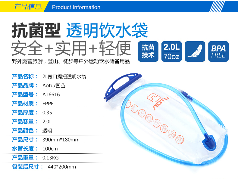 [UF72戶外露營]瑞士奧途系列 戶外2L宽口飲水袋 運動水袋 騎行登山背包水囊 AT6616(2入組)